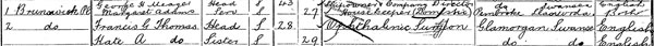 However, his sister Kate is here and they both appear ten years later (see below) living together in Brunswick Place in Swansea where my grandfather Francis (or Dinks as he was always known) has qualified as an Ophthalmic Surgeon. | ||