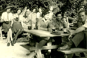 Although in this photograph it seems to be Brigsie staring adoringly at my father, this trip to La Grotte in Austria with a group of fellow officers was the first time my father (far right) asked my mother out on a date. | |