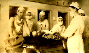70 General Hospital - Pompeii My father (far left) in the plaster theatre. Before flying to Italy, he had been operating at 94 General Hospital, Beni Messouss in Algiers having moved from the 95th in Ben Aknoon a month earlier. |